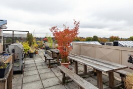 Welcome to L'Atelier! Originally "Forsts", a 1930's department store, this one-of-a-kind, Georgie Award winning Heritage Conversion located in the heart of Hastings Sunrise was completed by Paul Merrick Architects in 1995. This beautiful, bright, open concept unit is 872 square feet with ceilings reaching past 9 feet, and features original hardwood maple floors. A complete custom kitchen renovation provides expansive space for entertaining flowing seamlessly into the living area. This unit has been freshly painted, meticulously cared for and is awaiting its new owner! This unique live/work building is full of character and endless potential, with pets and rentals allowed. Enjoy the rooftop terrace featuring views of the mountains, ocean and city. Open House Sun. Apr. 6 2-4pm