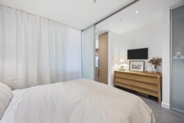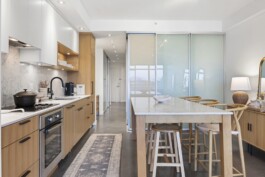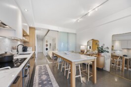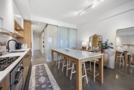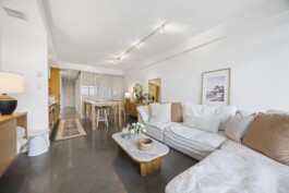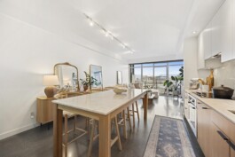 Experience modern living in this stunningly renovated 1-bed, 707 sq. ft. unit at Jacobsen. The brand-new kitchen and bathroom boast sleek finishes, with a custom dining table featuring matching quartz. The storage room/den includes built-in cabinetry and an extra fridge for added convenience. The spacious living room is enhanced by a massive built-in media center, while the bedroom offers a cozy retreat with a shiplap accent wall and wall sconces. Enjoy top-tier amenities, including a gym and workshop, in this highly sought-after building designed for style and functionality.